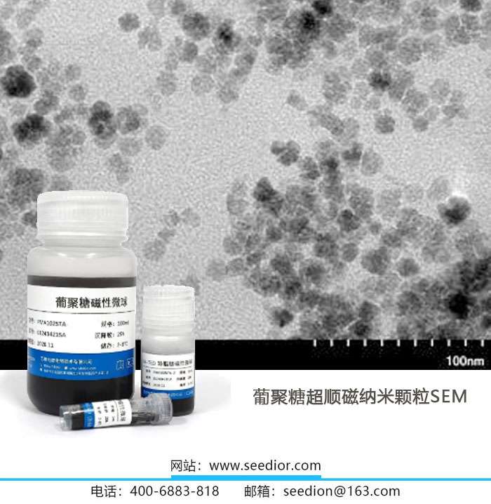 純度: 25mg/ml,飽和磁化強(qiáng)度 :60-70 emu/g,Zeta電位小于-25 mV ,葡聚糖修飾四氧化三鐵納米顆粒,表面具有活性基團(tuán),具有超順磁性,可磁導(dǎo)向性等特點(diǎn)。利用磁分選柱分離,適合以共價鍵與蛋白、抗體、鏈霉親和素、生物素、谷胱甘肽等結(jié)合,確保高效偶聯(lián)抗體和抗非特異性吸附?!狙芯颗c應(yīng)用方向】:磁靶向、磁熱療、T2加權(quán)成像、細(xì)胞分選