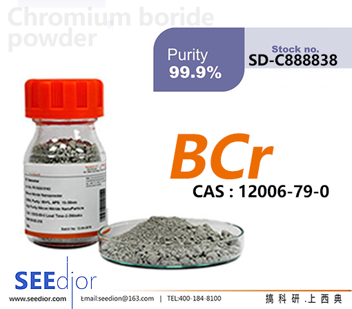 純度: >99.9%; 銀灰色粉末,應(yīng)用方向:用作耐磨、抗高溫氧化涂層和核反應(yīng)堆中的中子吸收涂層。用于陶瓷,熔噴在金屬及陶瓷表面,形成耐磨、耐蝕薄膜。用于噴制半導(dǎo)體膜。硼化鉻與氧化鋁在微氧化氣氛中燒結(jié)或熱壓制品,有高溫耐磨的實(shí)用價(jià)值。
