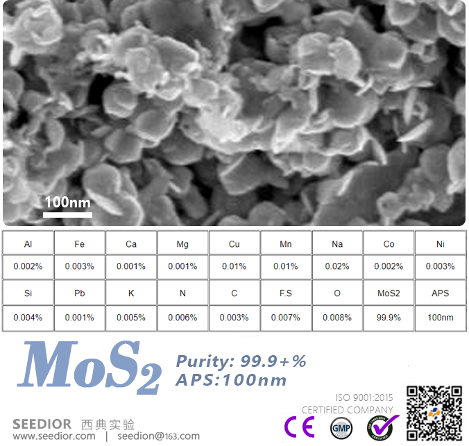 純度: 99.9+%;本品為有光澤的深灰色粉末,密度4.8,熔點(diǎn)1185°C,升華450°C,莫氏硬度為1-1.5。一般情況下,摩擦系數(shù)為0.03~0.05。是高效干式潤(rùn)滑膜減少摩擦的關(guān)鍵材料。應(yīng)用方向:固體潤(rùn)滑劑;PS/MoS2納米復(fù)合材料;重油轉(zhuǎn)化、高活性的煉油加氫催化劑;它還有抗磁性,可用作線(xiàn)性光電導(dǎo)體和顯示P型或N型導(dǎo)電性能的半導(dǎo)體,具有整流和換能的作用。