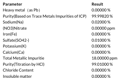 純度: 99.99% metals basis,白色單斜晶系粉末,微溶于水,本品1克能溶于78毫升冷水及140毫升沸水中;溶于稀酸,不溶于醇. 【研究與應(yīng)用方向】:制取各種高純鋰鹽的原料,鈮酸鋰、碳酸鋰單晶的制備原材料,用于光學(xué)特種玻璃,搪瓷工業(yè),醫(yī)藥,催化劑,彩色熒光粉及鋰離子電池材料等.