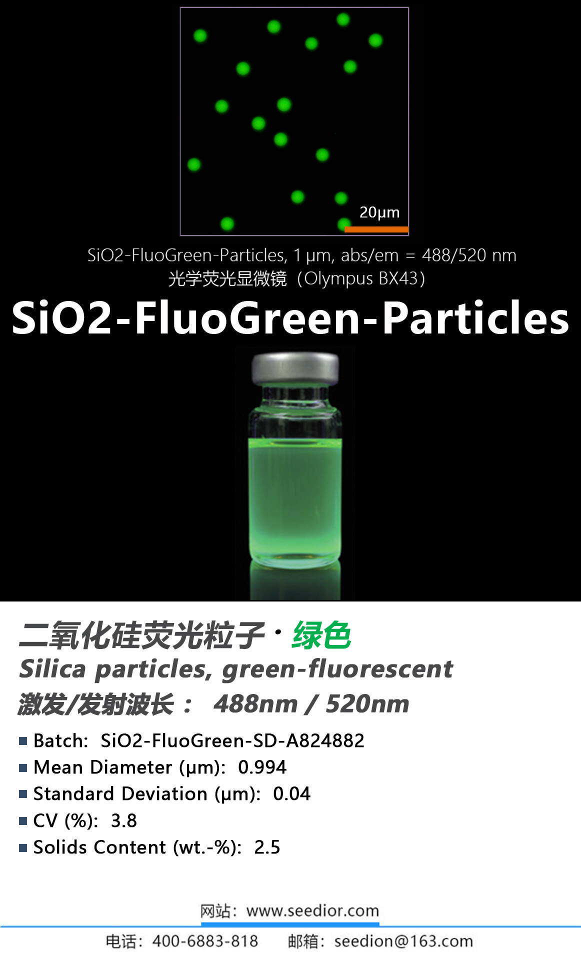 SiO2-FluoGreen-Particles綠色熒光二氧化硅微球 | 二氧化硅熒光微球 | Ex/Em : 488nm/ 520nm