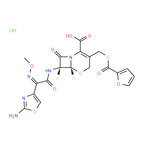 (6R,7R)-7-((Z)-2-(2-Aminothiazol-4-yl)-2-(methoxyimino)acetamido)-3-(((furan-2-carbonyl)thio)methyl)-8-oxo-5-thia-1-azabicyclo[4.2.0]oct-2-ene-2-carboxylic acid hydrochloride頭孢噻呋鹽酸鹽